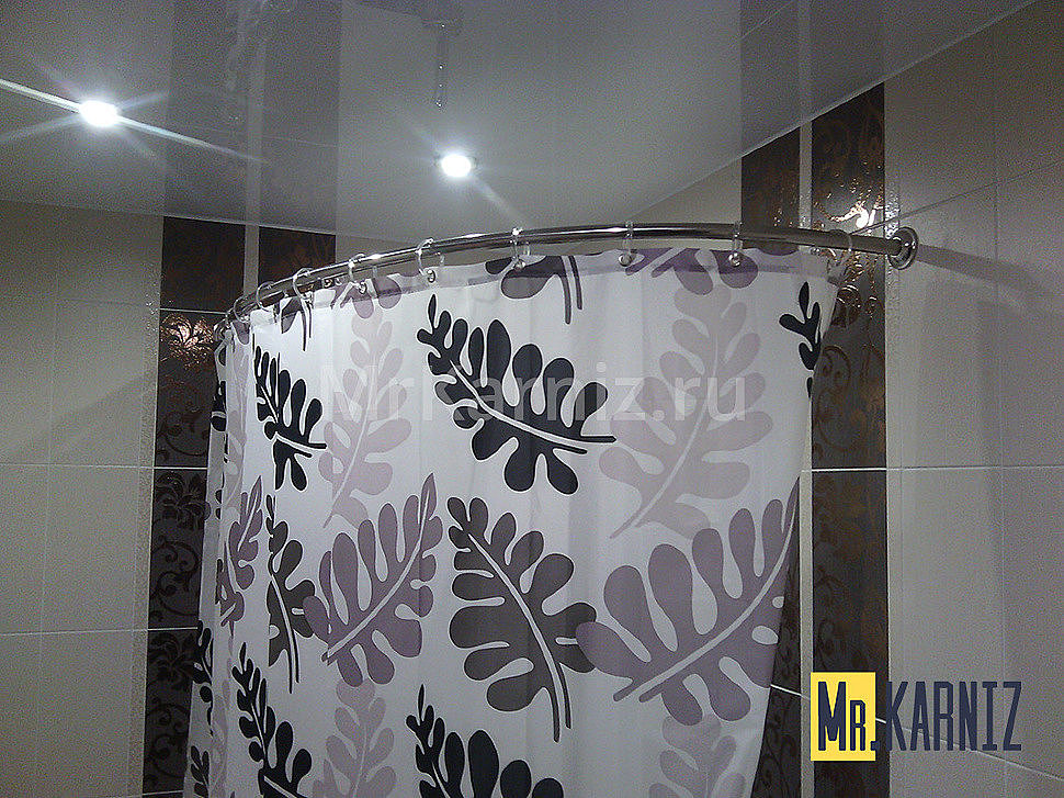 Каждая такая штанга в точности повторяет конфигурацию поддонов (ванн). Благодаря карнизам с нанизанными на кольца шторками душевая смотрится элегантно, создается единая законченная композиция.